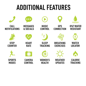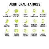 Stay connected with live weather updates, alarms, and reminders. Personalize your watch with exclusive dials and control your music and camera remotely.