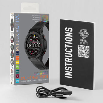 Each watch comes in a gift box with an instruction manual and USB charger. Download the Reflex Active Blue App for more features. Compatible with Android 9.0+ and iOS 12+.
