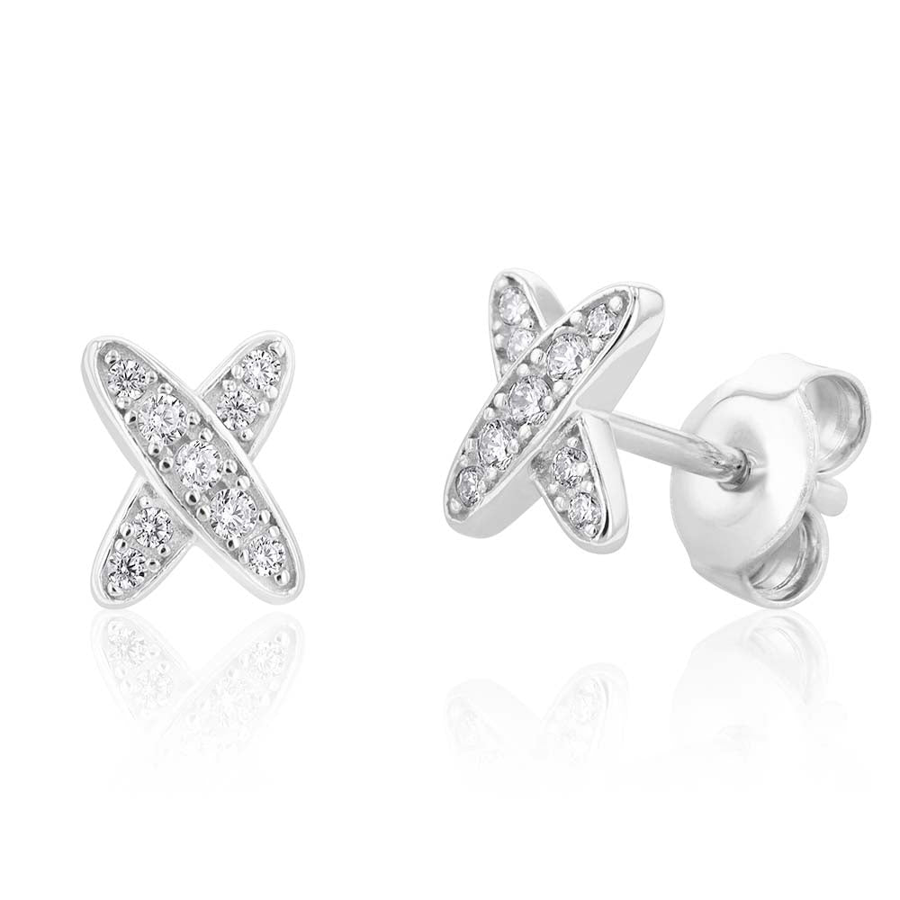 Rhodium Plated Sterling Silver Cubic Zirconia On Cross 7mm Stud Earrings