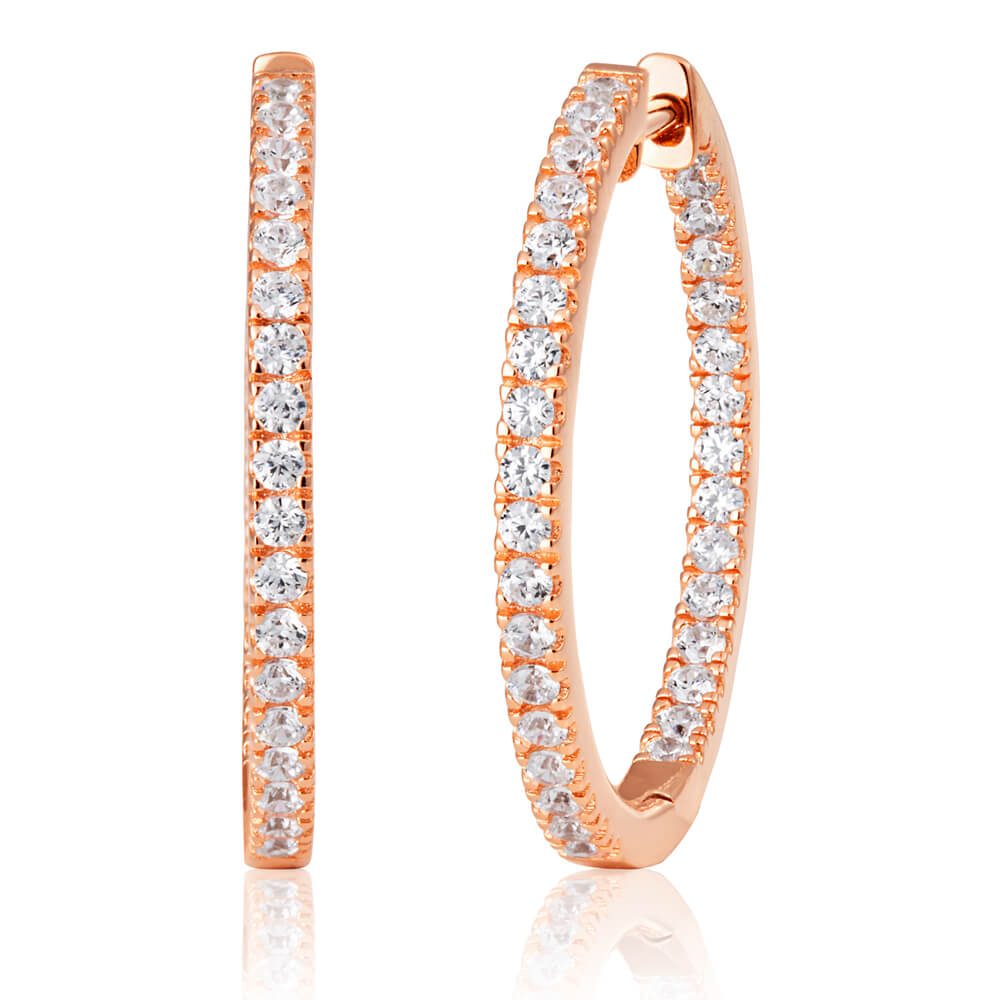 Rose Coloured Gold Plated Sterling Silver Cubic Zirconia Hoop Earrings