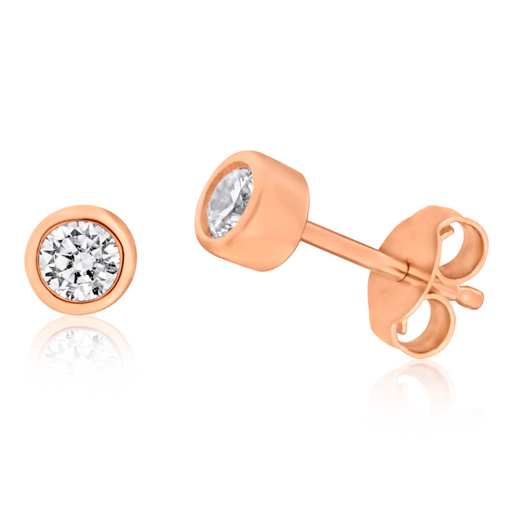 Rose Gold Plated Sterling Silver Zirconia Bezel Stud Earrings