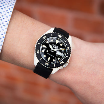 With a 39mm case size and a durable resin case, it offers both comfort and resilience for everyday wear. The luminous hands and markers ensure visibility in low-light conditions, while the Hardlex crystal provides scratch resistance. Paired with a flexible silicone strap, this watch is designed to keep up with your active lifestyle. With a water resistance of up to 100 meters, the Seiko 5 SRPG79K is ready for adventures both on land and in the water.