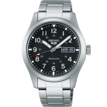 Driven by the Seiko Automatic and Manual winding movement calibre 4R36, this watch provides an approximate power reserve of 41 hours and maintains a daily time tolerance of +45 / -35 seconds. With a case size of 39.4mm x 13.2mm, it comes with a matching bracelet and a three-fold clasp with a push-button release, ensuring a secure fit. With a water resistance rating of 100m and weighing approximately 150gm, this watch is both stylish and durable. Additional features include a screw case back, a see-through case back, 24 jewels, and a day and date function. The classic combination, highlighted by the red-tipped sweeping second hand, ensures this watch remains timeless and immune to passing fashion trends. Its 39.4mm case size makes it ideal for those with smaller wrists.