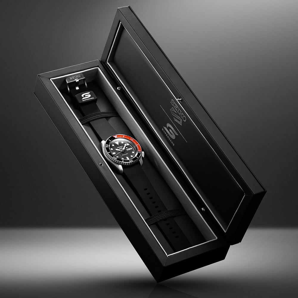 Presented in a special presentation box adorned with the iconic Supercars logo, the men’s automatic watch SRPJ97K features the logo on the crown as well as on the exhibition case back.