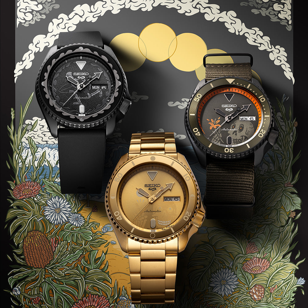 Kentaro Yoshida was commissioned to design the original artwork titled "Time Goes by Forever," which serves as the foundation for this collaboration with Seiko Australia. The artwork symbolizes the concept of time as an endless cycle, reflecting the constant flow of life. Drawing inspiration from elements of nature—Clouds & Sky, Sun, Moon & Beach, and Wild Plants & Flowers—Kentaro’s work captures the essence of growth, change, and the unstoppable passage of time.
