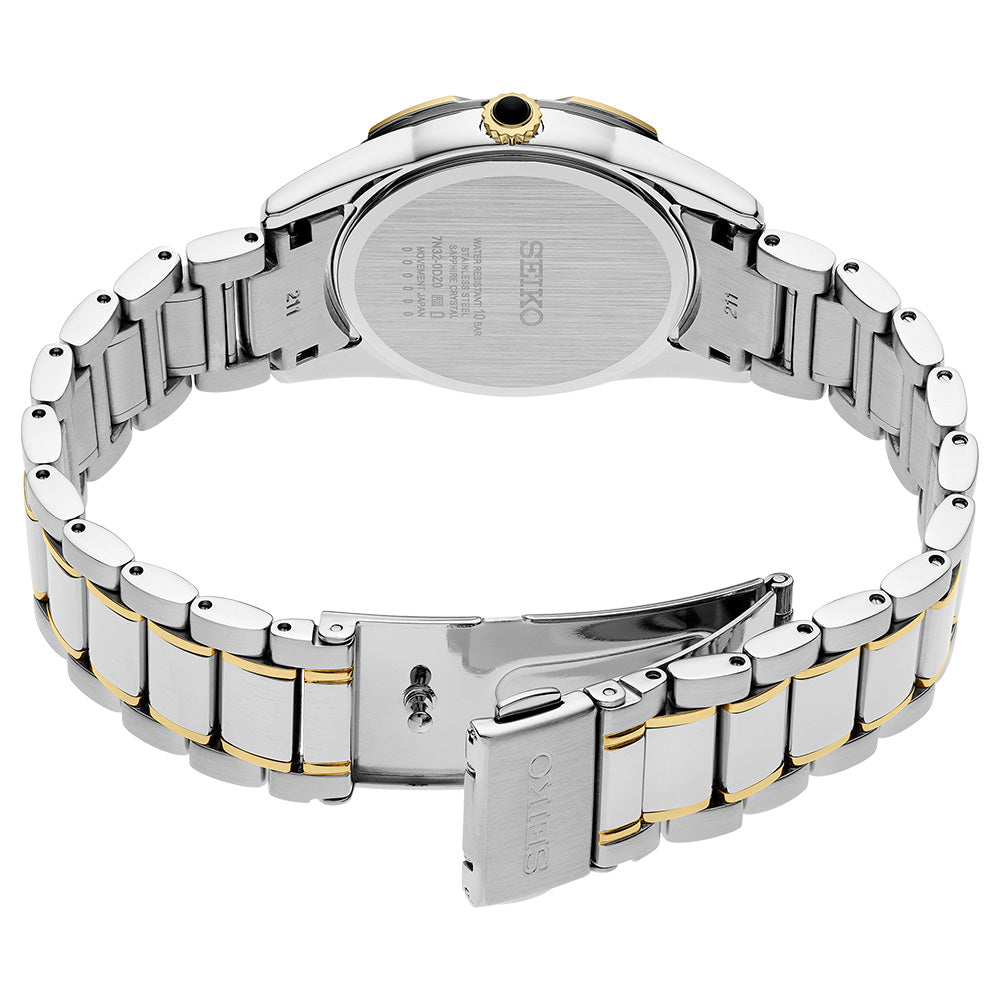 Driven by Seiko’s Caliber 7N32 quartz movement with 1 jewel, this watch offers reliable precision and low-maintenance convenience. The slim 7.2mm profile ensures all-day comfort, while sapphire crystal provides exceptional scratch resistance. With a secure three-fold clasp and 100 meters of water resistance, it's designed for both elegance and durability.