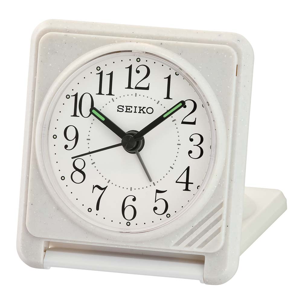 Seiko QHT017-W White Marble Tone Table Alarm Clock