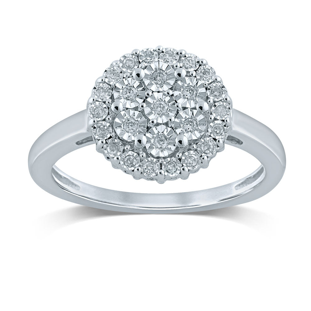 Silver 0.10 Carat Cluster Dress Ring with 25 Brilliant Diamonds