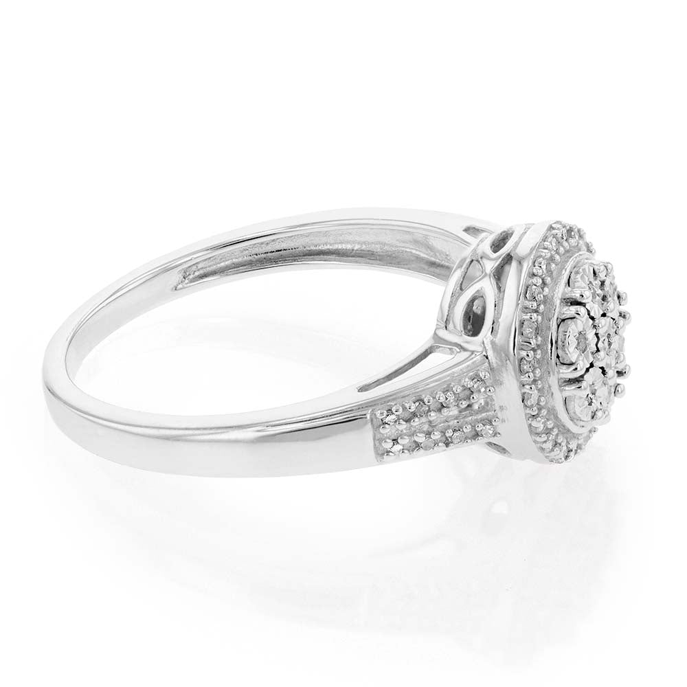 Silver 0.10 Carat Diamond Cluster Ring