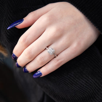 Silver 0.10 Carat Diamond Cushion Cluster Ring