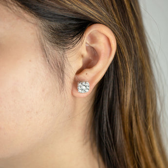 Silver 1/2 Carat Stud Diamond Earrings with 18 Diamonds 10mmx10mm