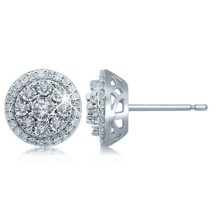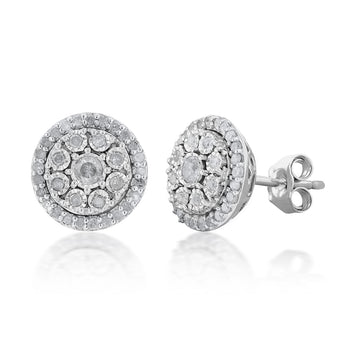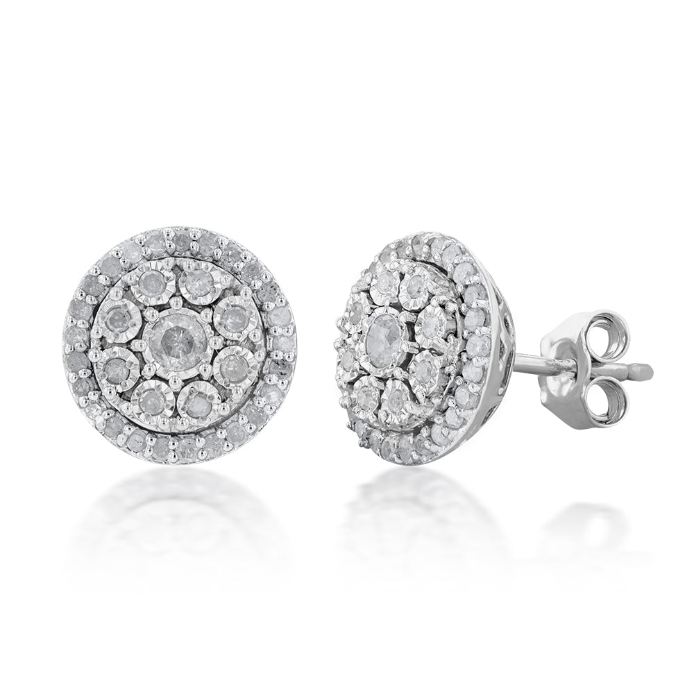 Silver 1/2 Carat Stud Diamond Earrings with 68 Brilliant Diamonds
