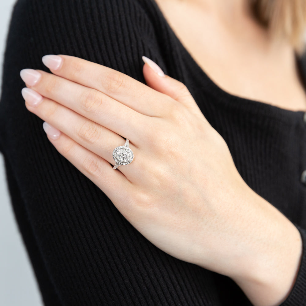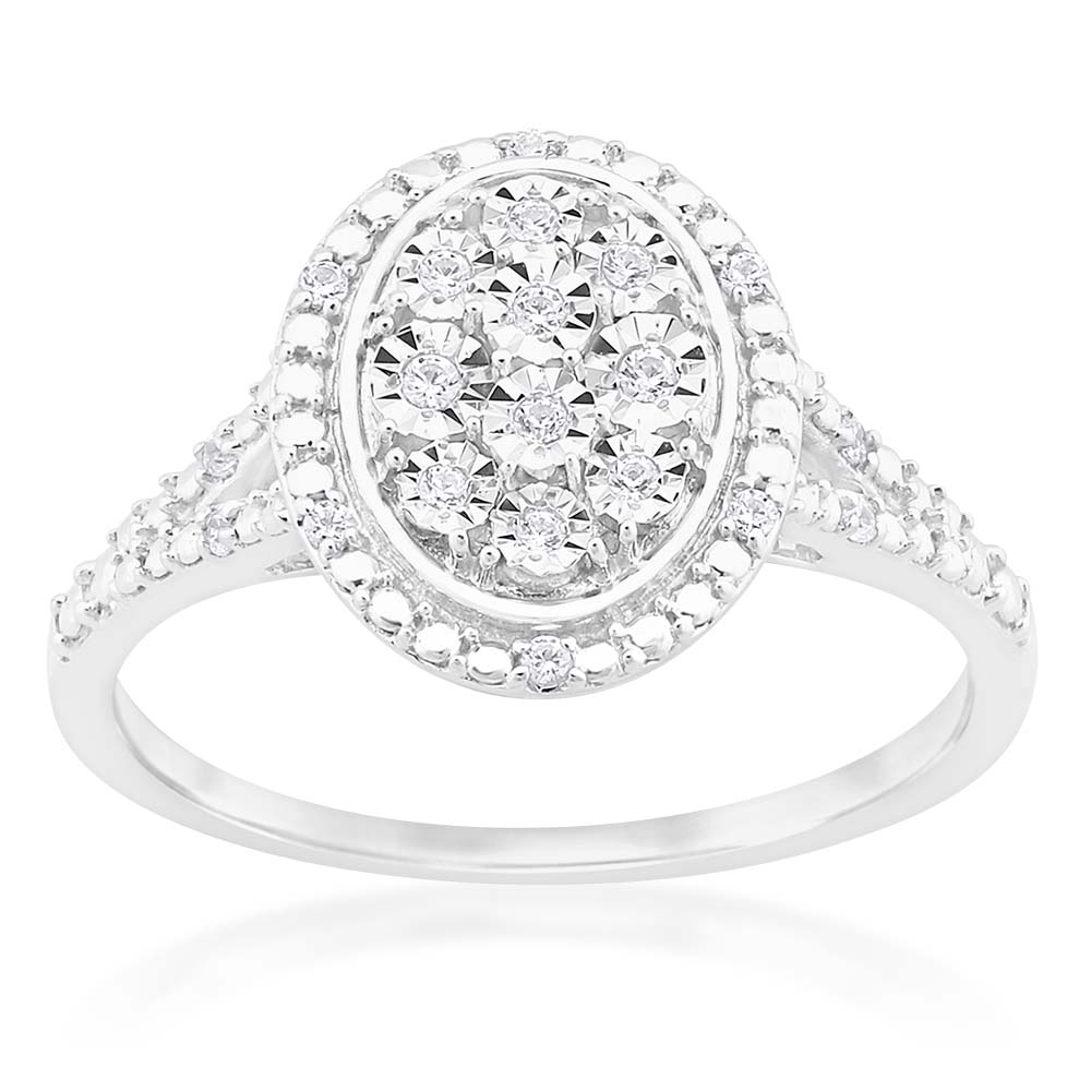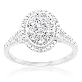 Silver Diamond Oval Cluster Ring with 20 Diamonds