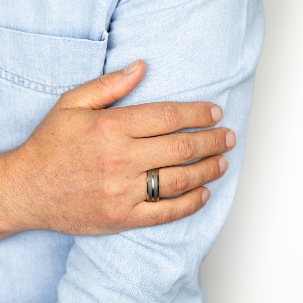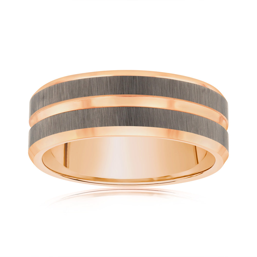 Silver Matt Stripes Rosegold 8mm Tungsten Ring