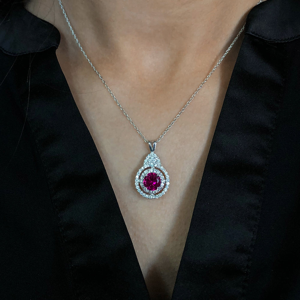 Silver Natural Enhanced Ruby Pendant with chain