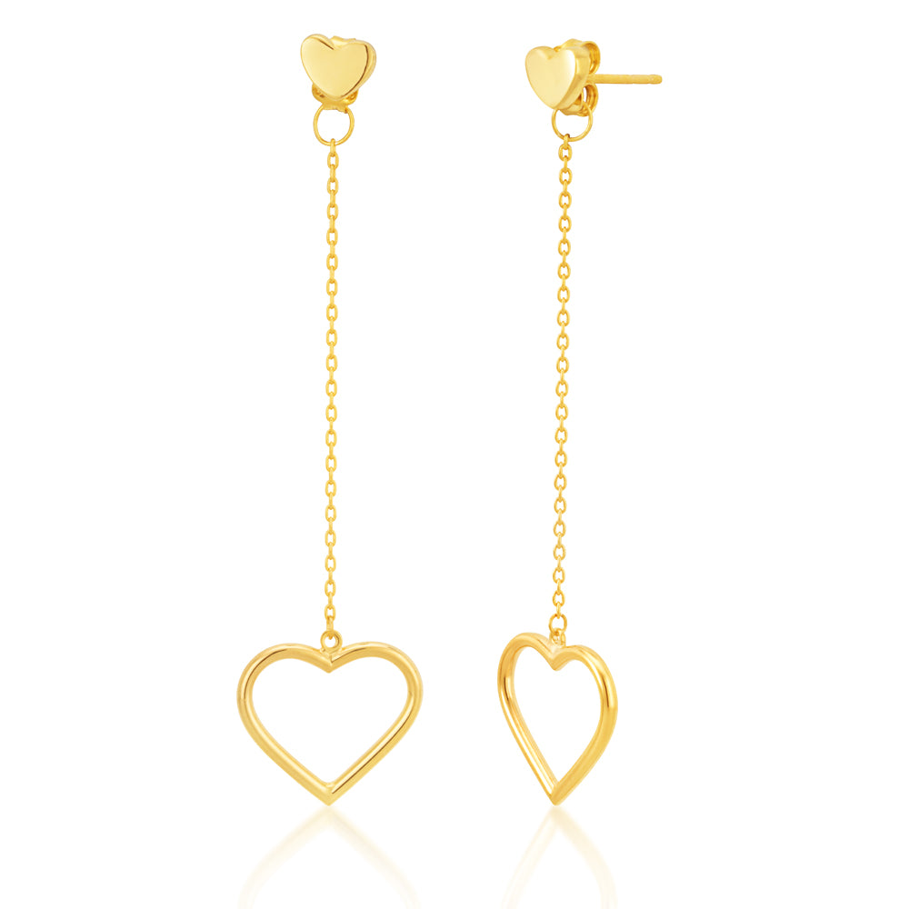 Silverfilled Open Heart Drop Earrings With Little Heart Stud