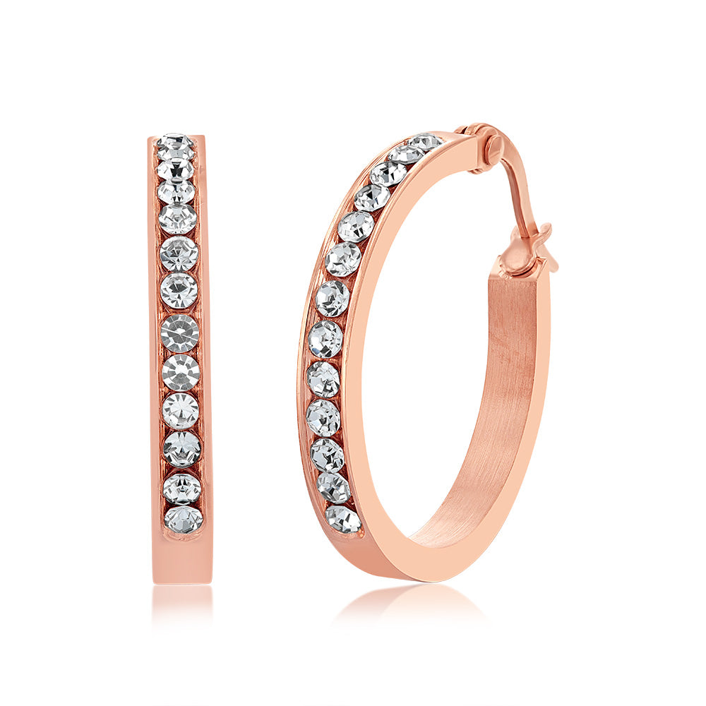Stainless Steel 25mm Half Circle Rose Gold Plated Crystal Hoop Earrings