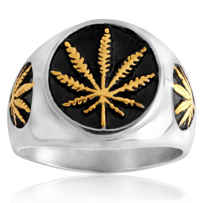 Stainless Steel and Gold Plated Hemp Leaf Ring *NO RESIZE*