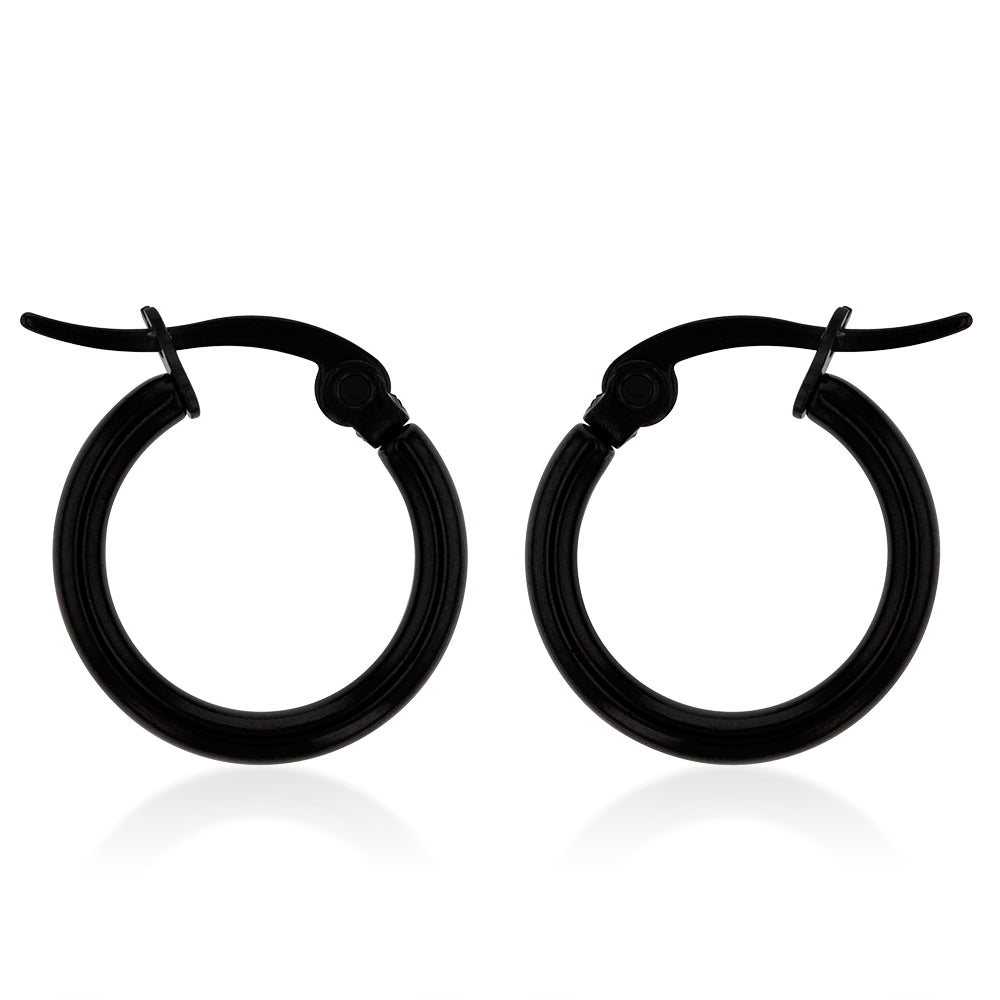 Stainless Steel Black 11mm Hoop Earrings