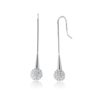 Stainless Steel Crystal Ball with Bar Drop Earrings