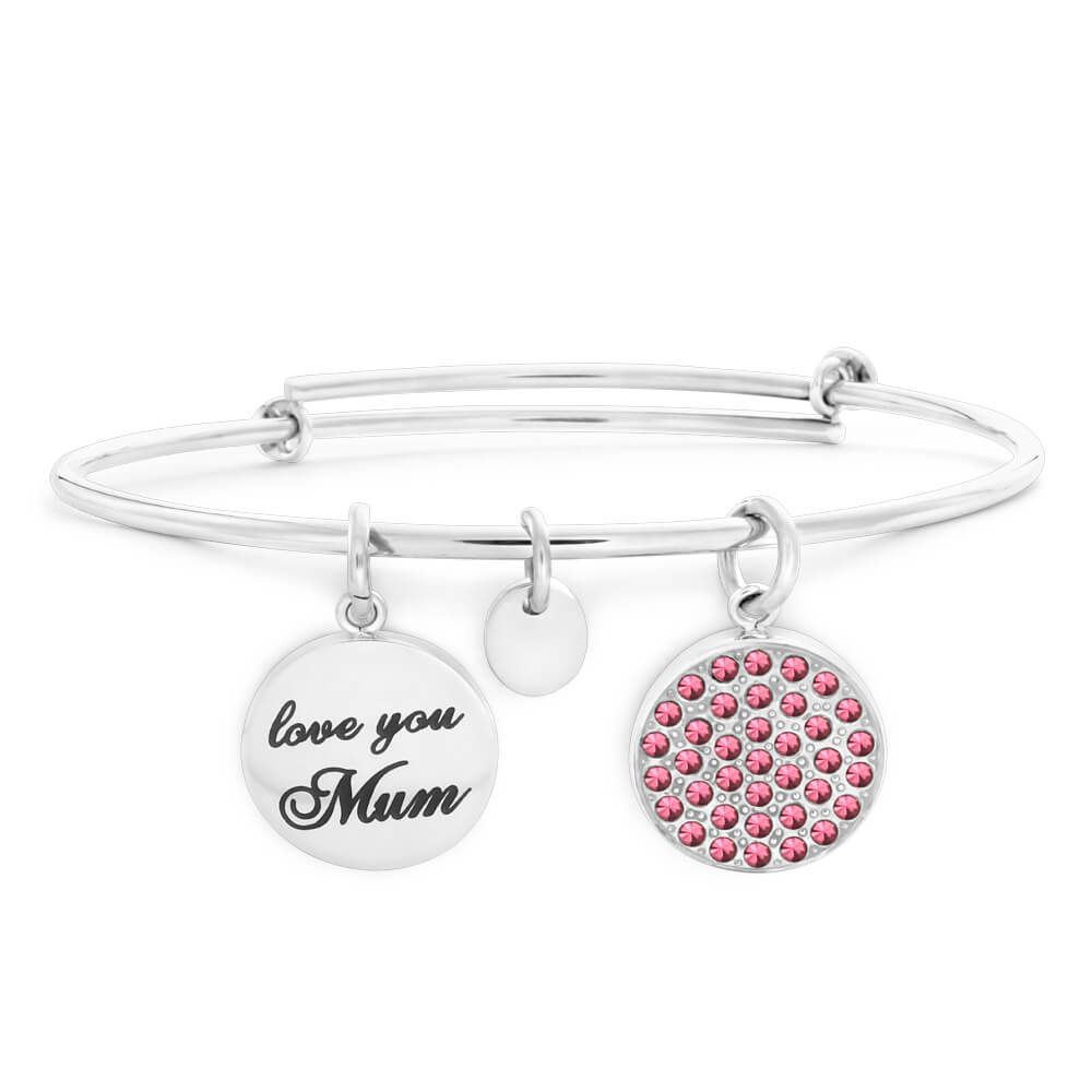Stainless Steel Crystal Love You Mum 63mm Bangle