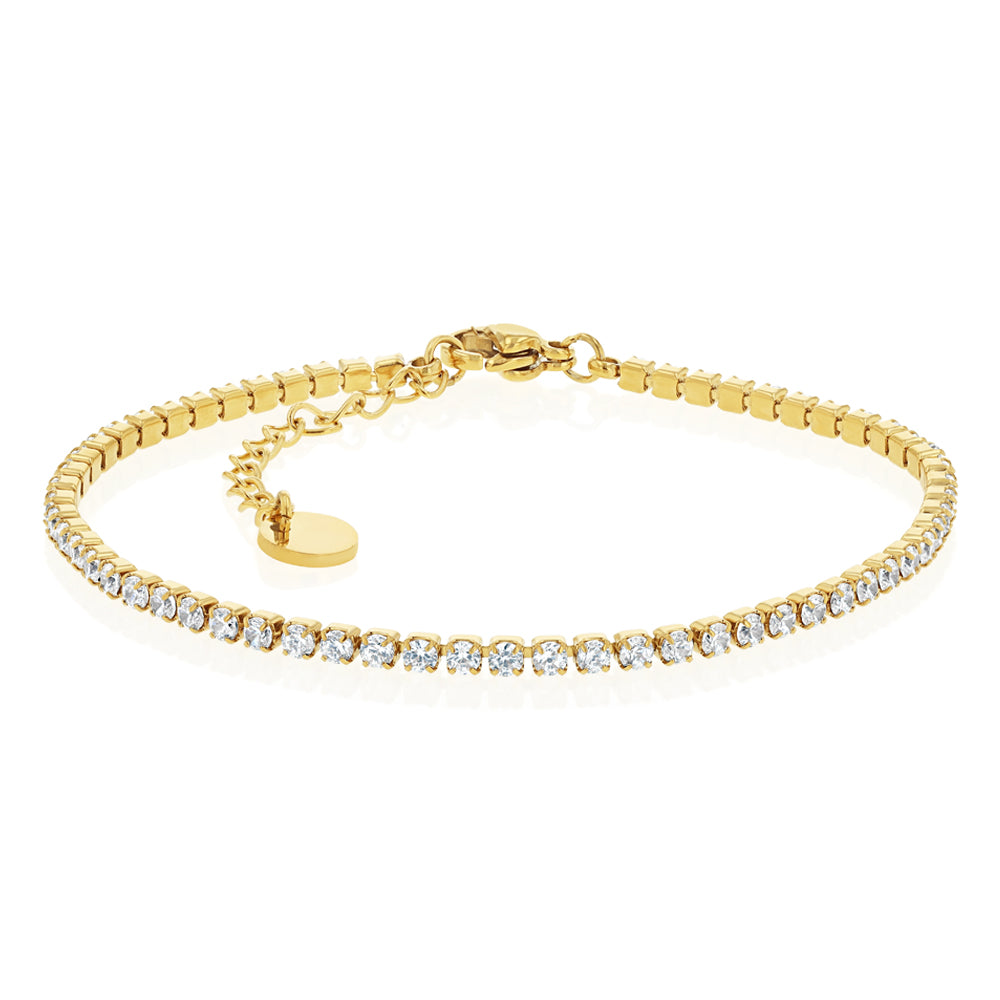 Stainless Steel Gold Plated 2mm Cubic Zirconia Tennis 17+3.5cm Bracelet