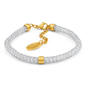 Stainless Steel Gold Plated Crystal Float Mesh Fancy Bracelet