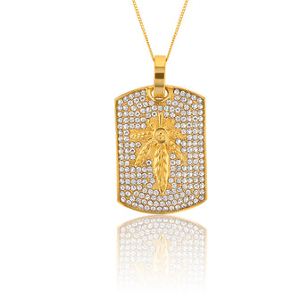Stainless Steel Gold Plated Hemp Leaf Crystal Set Dogtag Pendant