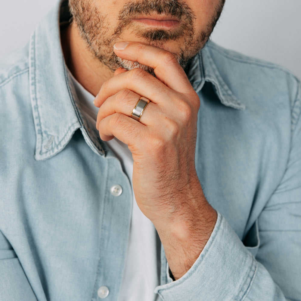 Stainless Steel Gold Plated Stripped Two-Tone Ring
