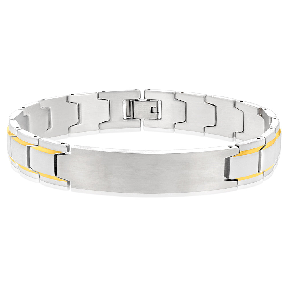 Stainless Steel Gold Stripe With ID Plate 21cm Bracelet
