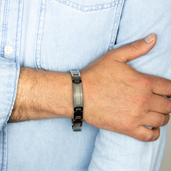 Stainless Steel Greek Key Black And Silver 20.3cm Bracelet