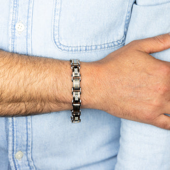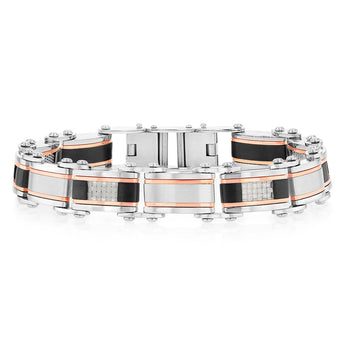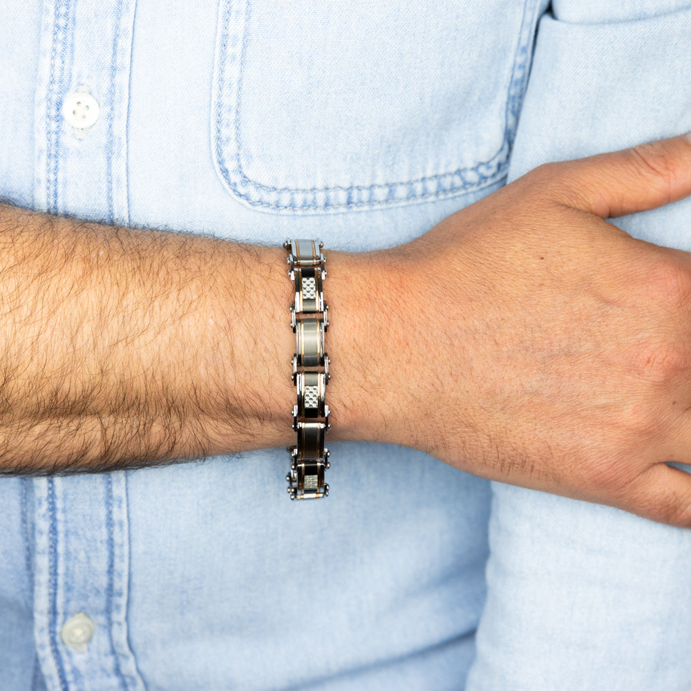 Stainless Steel Multi Tone Silver Black And Chocolate 21cm Bracelet