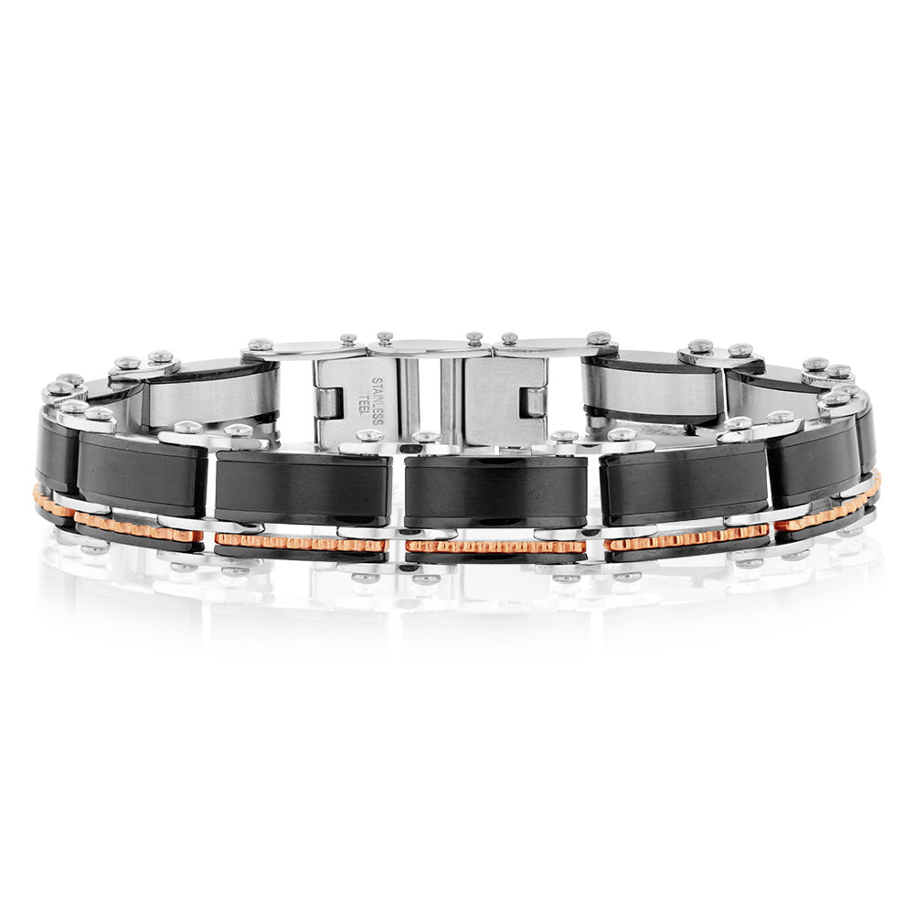 Stainless Steel Multitone Silver Black And Chocolate Hinged 21cm Bracelet