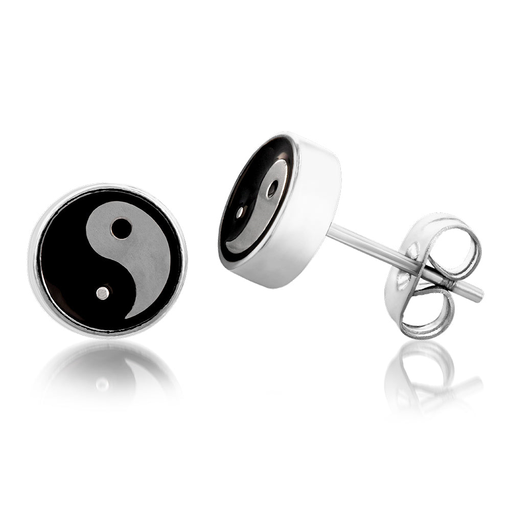 Stainless Steel Ying Yang 8mm Stud Earrings