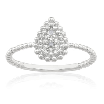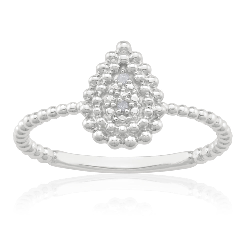 Sterling Silver 0.01 Carat Diamond Pear Shape Ring with 2 Brilliant Cut Diamonds