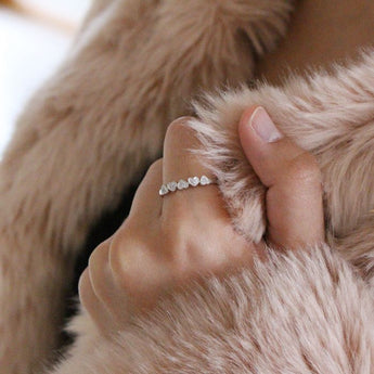 This five-heart diamond ring carries a petite essence with a delicate expression. This ring is so pretty the wearer won’t want to take off!