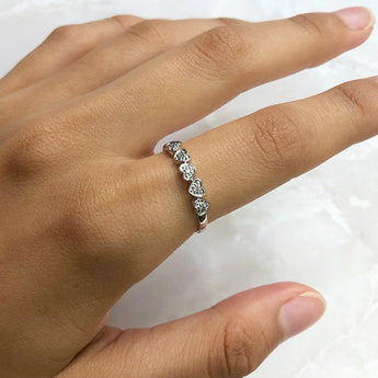 Sterling Silver 0.02 Carat Five Hearts Diamond Ring with 5 Brilliant Cut Diamonds