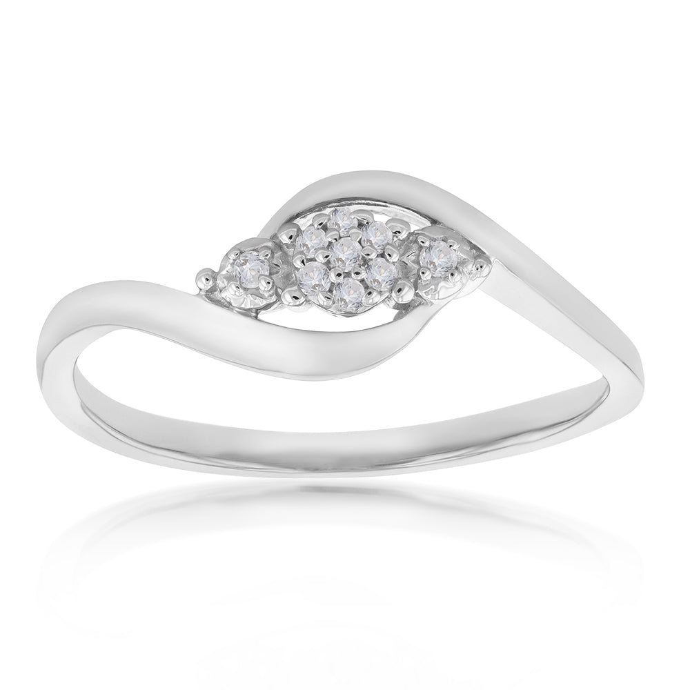 Sterling Silver 0.05 Carat Diamond Ring with 9 Brilliant Cut Diamonds