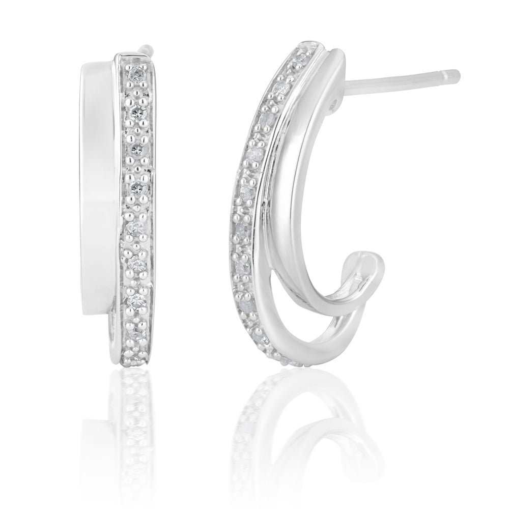 Sterling Silver 0.09 Carat Diamond Stud Earrings with 20 Brilliant Cut Diamonds