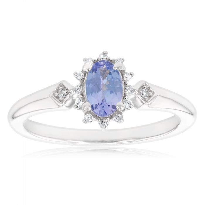 Sterling Silver 0.50ct Tanzanite and White Zircon Ring