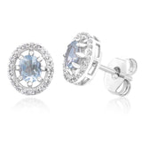 Sterling Silver 0.89ct Aquamarine and White Zircon Oval Halo Stud Earrings