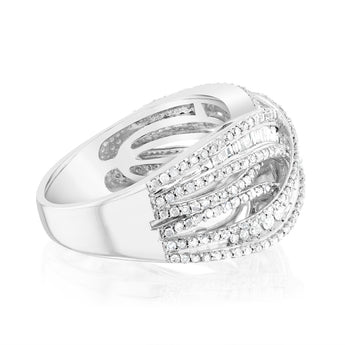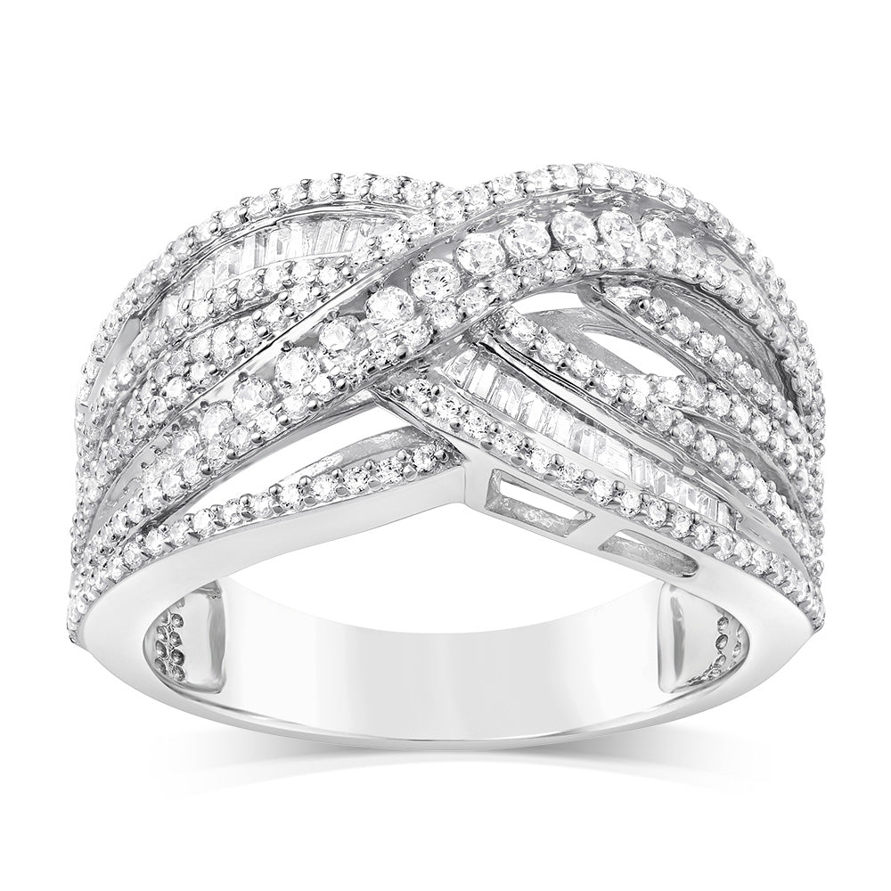 Sterling Silver 0.95 Carat Diamond Ring With Round and Baguette Cut Diamonds
