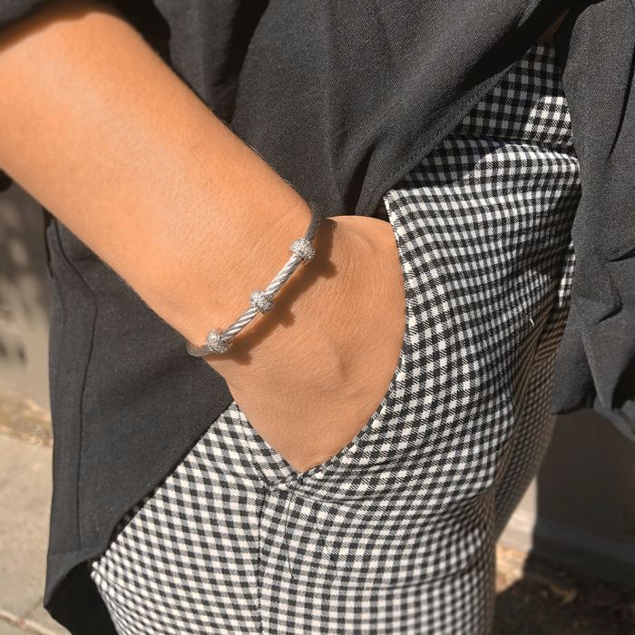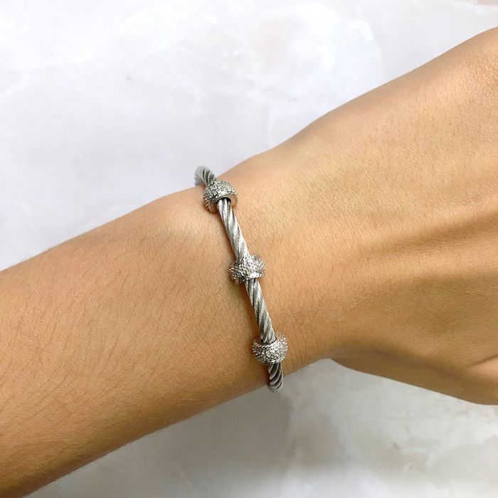 Sterling Silver 08 Points Diamond 3mm Cable Bangle