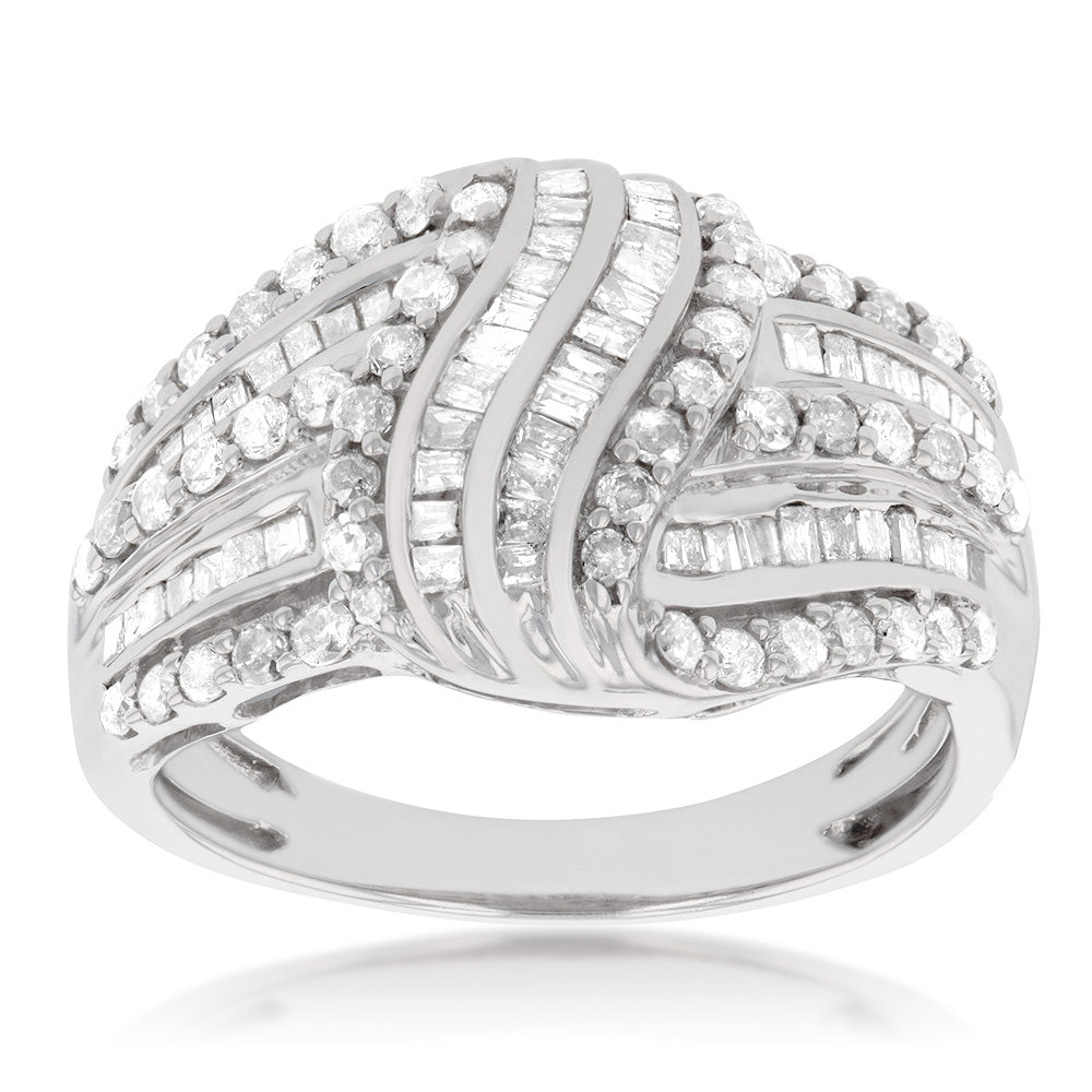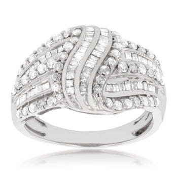 Sterling Silver 1.1 Carat Diamond Ring with Round Brilliant Cut Diamonds