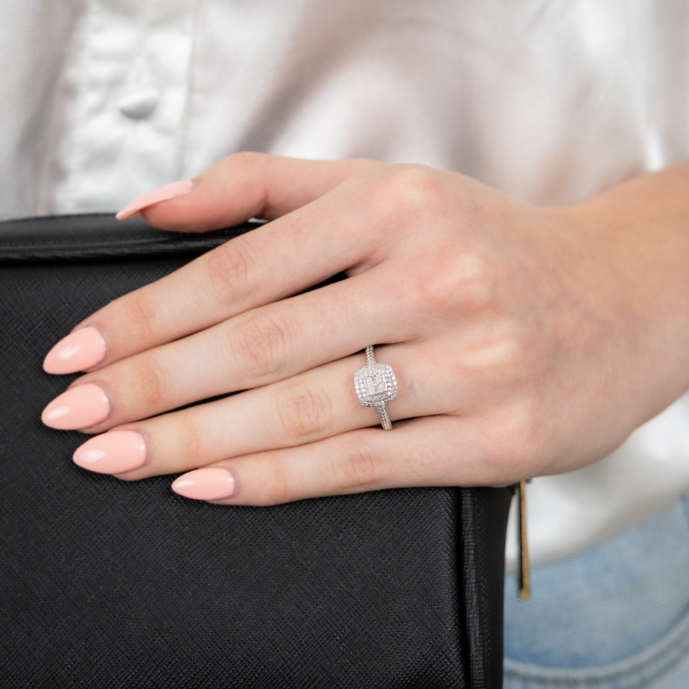 Sterling Silver 1/10 Carat Diamond Cushion Shaped Ring