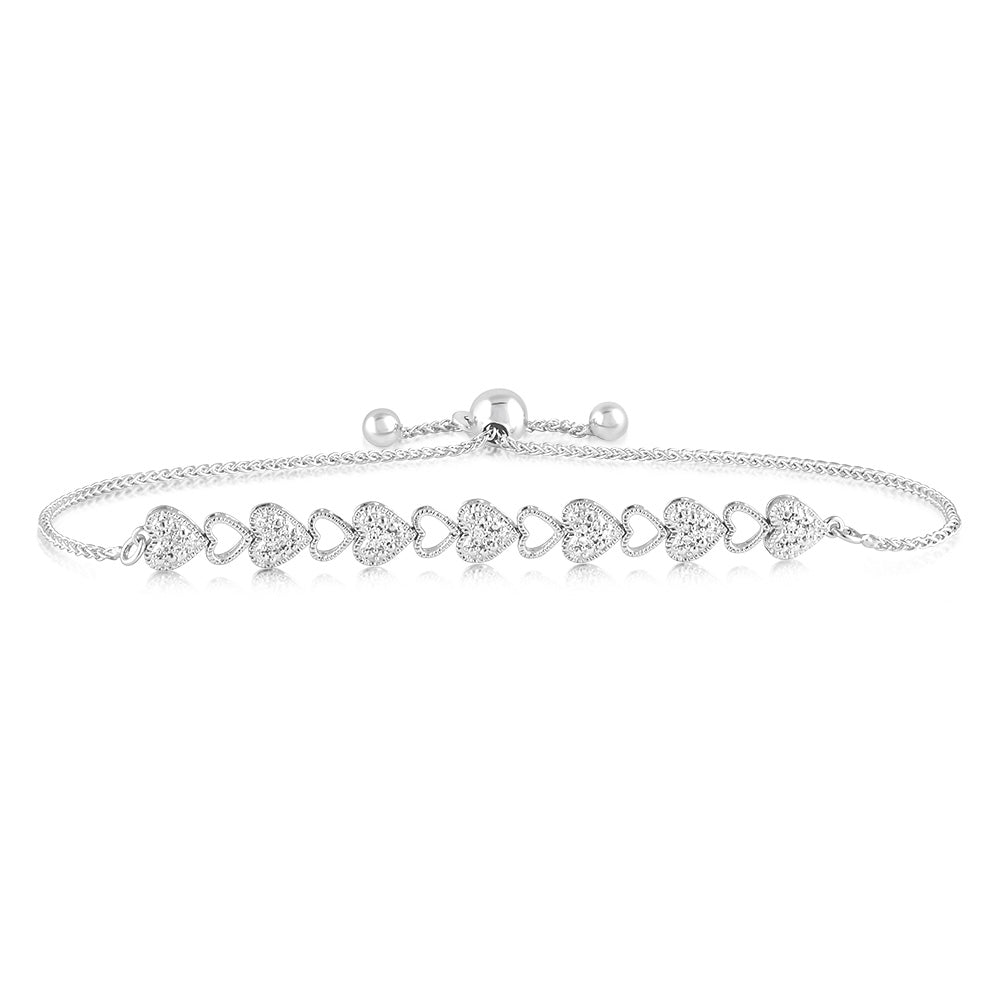 Sterling Silver 1/10 Carat Diamond Heart Slider Bracelet