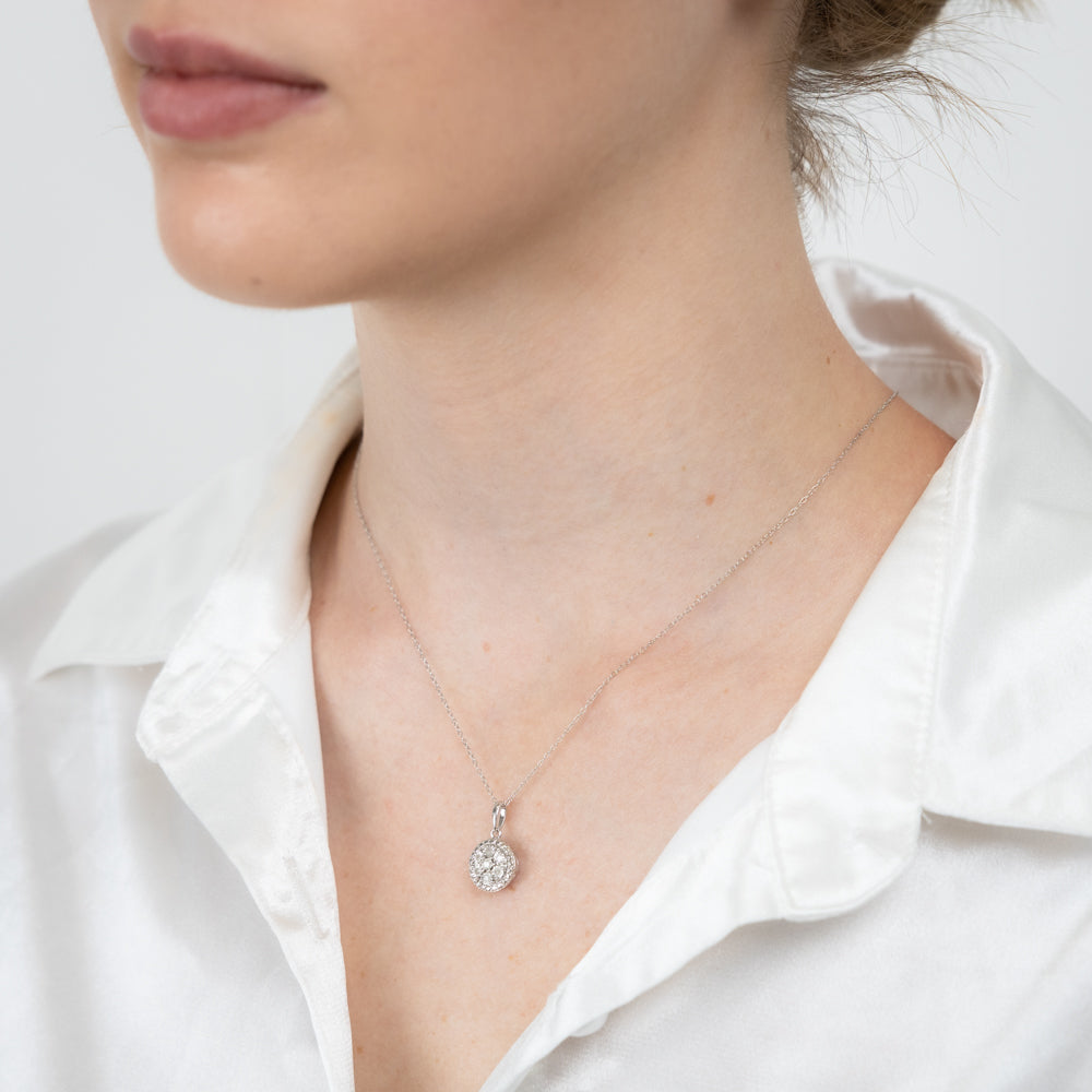 Sterling Silver 1/10 Carat Diamond Round Cluster Pendant on 46cm Chain