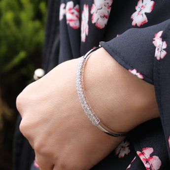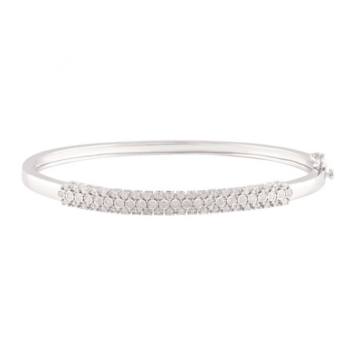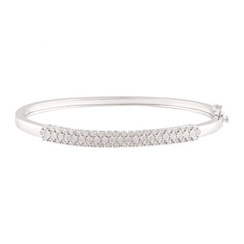 Sterling Silver 1/2 Carat Diamond 3 Row 60mm Hinge Bangle