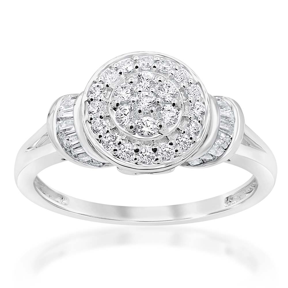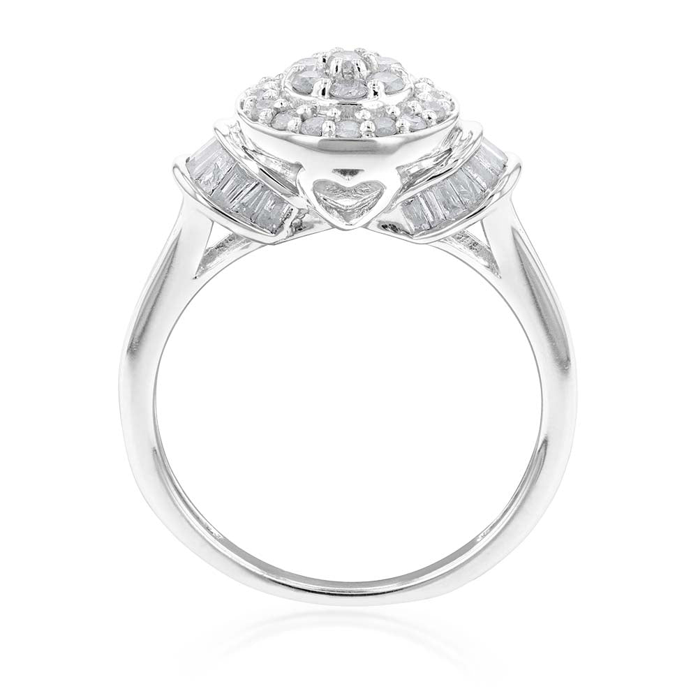 Sterling Silver 1/2 Carat Diamond Round Cluster Ring