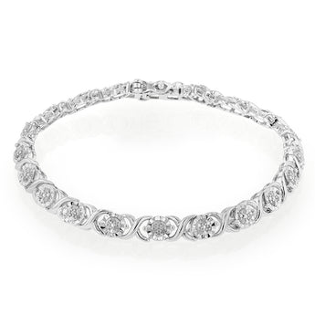 Sterling Silver 1/4 Carat Hugs and Kisses Diamond 18cm Bracelet